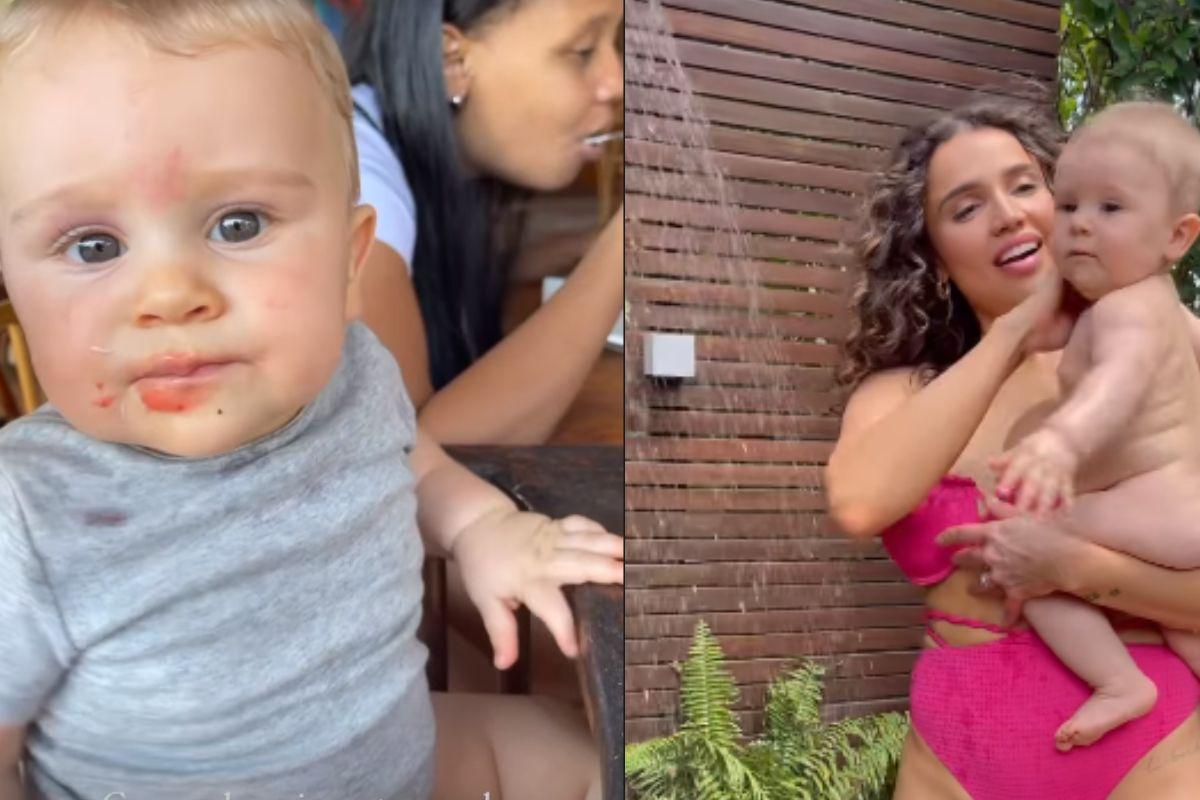 Nos Stories ela mostrou que Theo curtindo a viagem , comendo peixe, tomando morango batido, tomando banho e dormindo. ”E olha quem pra curtir a praia!!! Todo lindinho com a pancinha de fora”, disse Paula no vídeo.