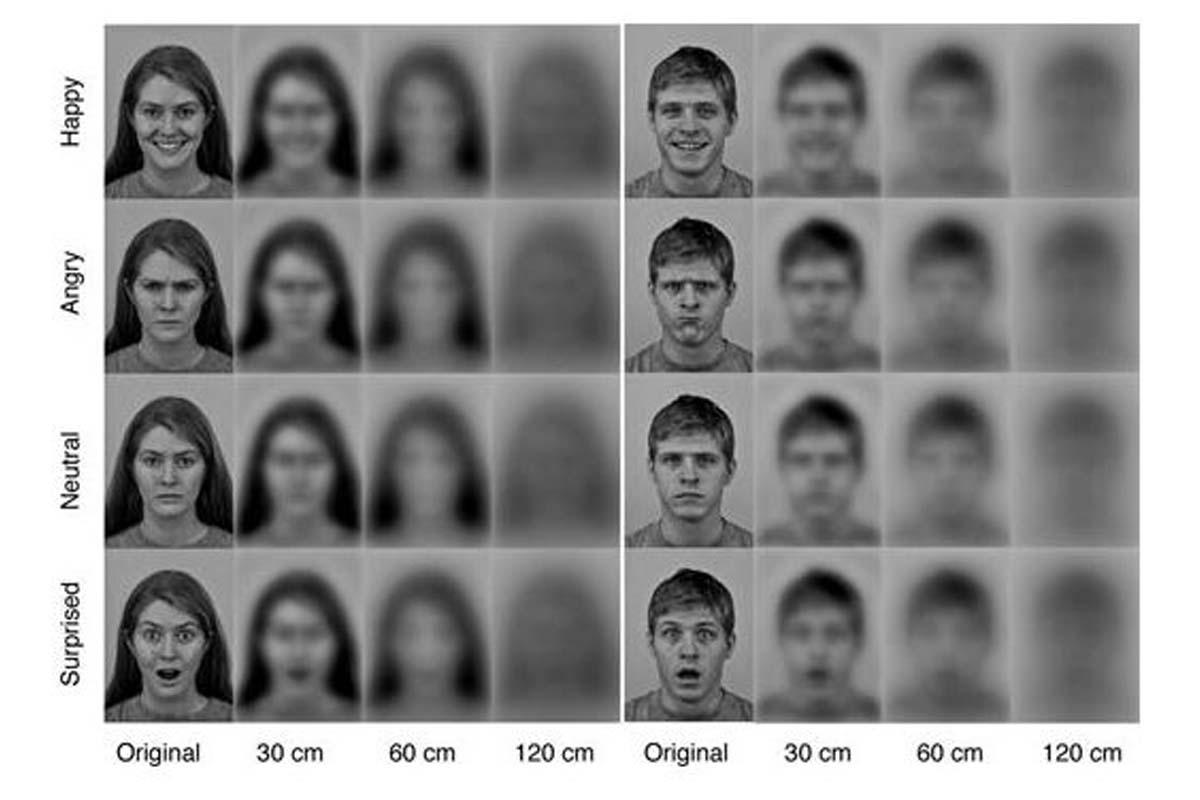 Para que você consiga entender melhor o quanto a distância é importante e o quão esperto o seu filho pode ser para reconhecer rostos e emoções, os chefes do estudo fizeram uma imagem que simula a visão dos recém-nascidos. E todo esse contato com dados sobre visão até pode explicar porque os recém-nascidos conseguem imitar algumas expressões faciais.