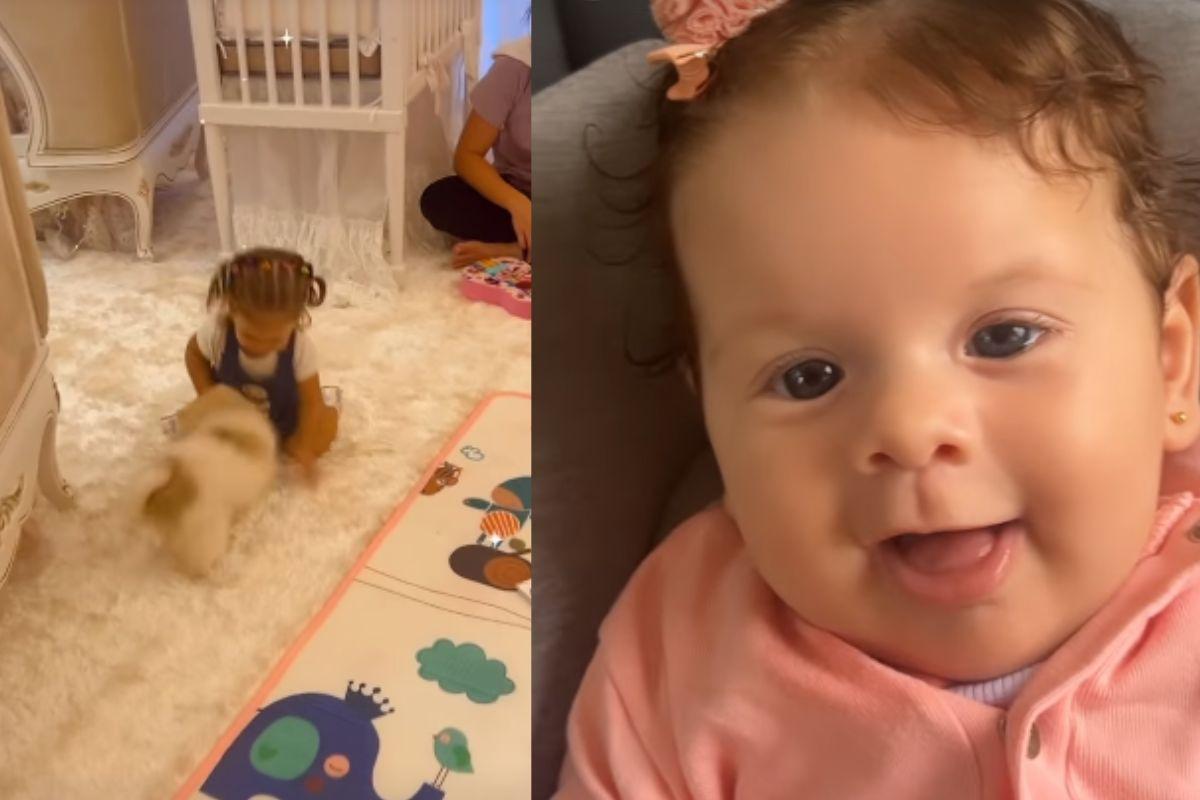 Na gravação Poliana mostra o cachorro correndo atrás da menina e a puxando pelo vestido para tentar chamar a atenção dela. Maria Alice é a primeira filha do cantor Zé Felipe, de 24 anos, com a influenciadora digital Virginia Fonseca, de 23 anos. Eles também são pais de Maria Flor, de 3 meses.