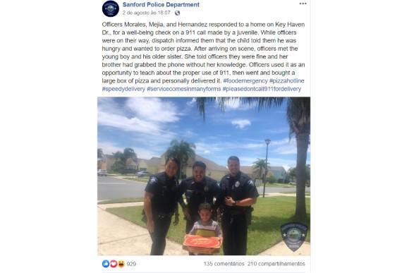 O departamento de polícia de Sanford foi surpreendida por uma ligação. Ela vinha de um menino de 5 anos e ele dizia estar com fome. E não parou por aí, Manuel Bechara disse que queria uma pizza. O caso aconteceu na Flórida, nos Estados Unidos e chamou a atenção do mundo após uma postagem no Facebook.