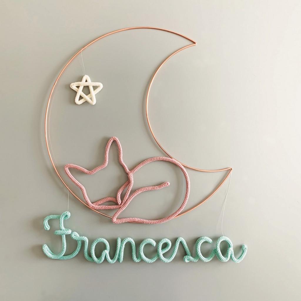 Além do nome do bebê, ele pode trazer uma frescura para deixar ainda mais fofo. Depois, ainda dá para usar como parte da decoração do quarto da criança e uma lembrança inesquecível. Esse é da marca Achei O Que Eu Queria, feito à mão com peças de tricô, arame e lã 100% natural e importada. Custa R$389,00 –  acheioqueeuqueria.com.br.