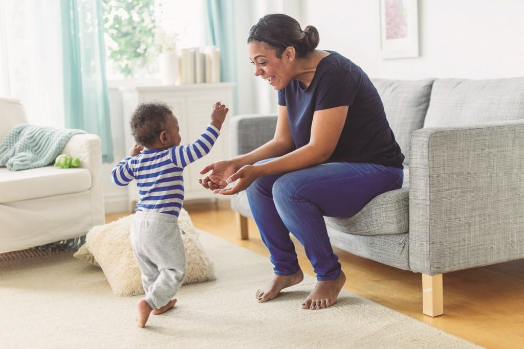 Uma vez que o seu bebê é capaz de ficar em pé, é só uma questão de tempo até ele estar andando com apoio ou cambaleando pela sala de casa. A maioria deles começa a andar com um ano de idade. Como estimular isso? Para andar é preciso coordenação, força nos músculos e experiência. Mas o equilíbrio e a confiança são essenciais! A brincadeira pode estimular essas habilidades. “Coloque uma cesta no chão, espalhe alguns brinquedos em diferentes alturas e peça para o seu filho guardá-los nela”, sugere Susan Cecere, vice-presidente da Academia de Fisioterapia para Crianças. Isso pode encorajá-la a se levantar e explorar o ambiente.