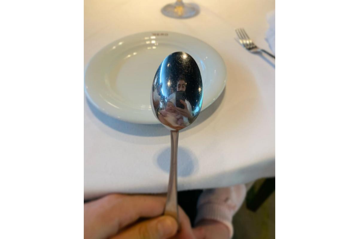 O ator publicou em seu Instagram uma foto em que aparece com Clara Maria… no reflexo de uma colher! Rafa usou o celular e a parte de trás de uma colher de sopa para mostrar seu rosto e o da filha. E não é que ficou legal?