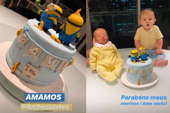 As imagens da festa foram compartilhadas nos stories da médica, que elogiou a decoração: “Amamos #1mesRavi” e completou em outra imagem: “Parabéns, meus meninos. Amo vocês”.