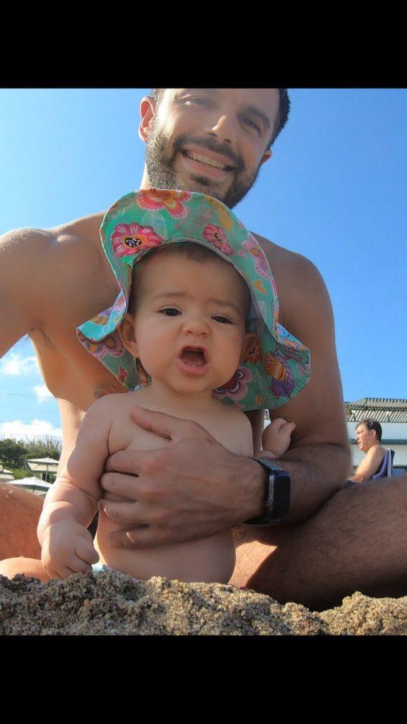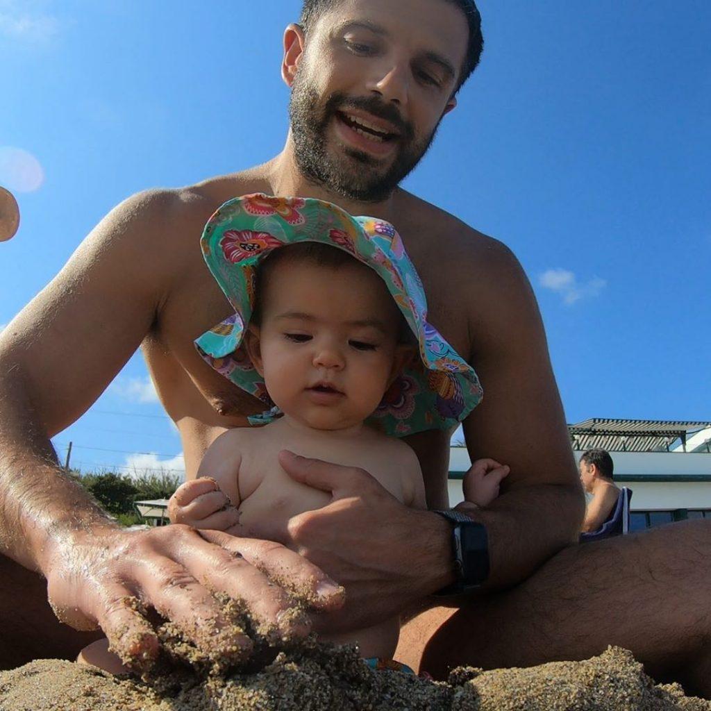 O pai babão fez questão de registrar tudo em fotos e vídeos e publicou em seu Instagram. Nas imagens, Sabrina aparece na beira do mar com Zoe, molhando os pés nas ondas. “Está muito gelada essa água!”, ele fala ao fundo.