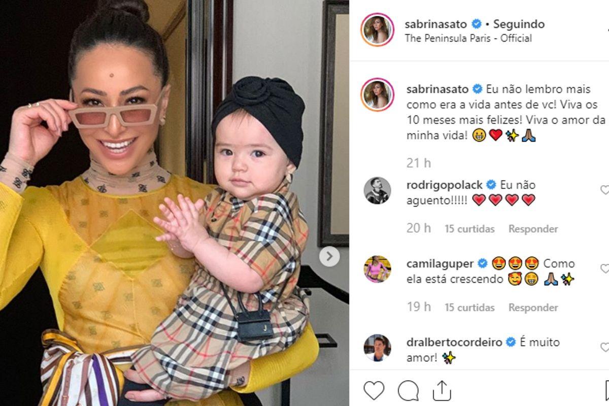“Eu não me lembro mais como era vida antes de você! Viva os 10 meses mais felizes! Viva o amor da minha vida!”, escreveu Sabrina. E é claro que os comentários foram uma chuva de elogios para mãe e filha. “Ah não gente, é pra cair morta de amores por essa boneca”, escreveu Luciele Di Camargo.