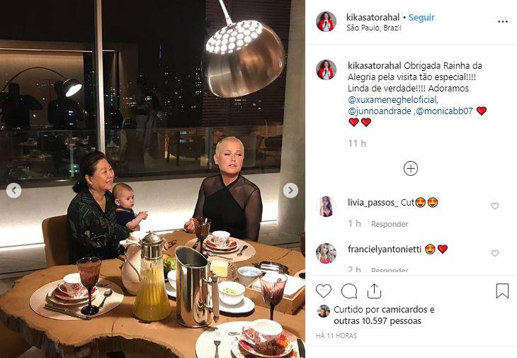 Mesmo não estando pessoalmente no encontro, Sabrina fez questão de publicar uma foto da filha com Xuxa. “Já que tenho a minha princesa, nada como uma rainha pra tomar conta enquanto a mamãe trabalha. Amamos muito”, escreveu na legenda da foto.
