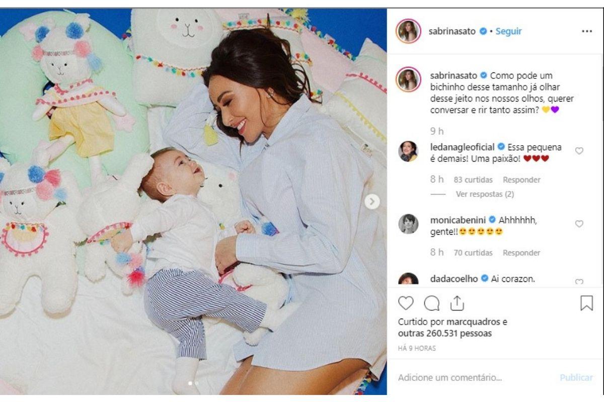 Não faltaram elogios nos comentários da publicação. Leda Nagle, mãe de Duda e sogra de Sabrina, foi só amores com a neta: “Essa pequena é demais! Uma paixão”, ela declarou.