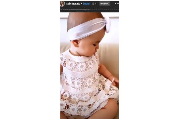 Dessa vez, Sabrina publicou em seus stories do Instagram um momento mais que especial, junto da mãe, dona Kika Sato, e de Zoe. Em vídeo, a bebê aparece usando um vestido branco – em um primeiro momento parece ser apenas uma roupa fofa, mas é bem mais do que isso: Sabrina conta que a roupa que a filha está usando é uma herança!
