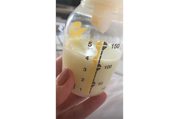 Em seguida, Sabrina publicou uma foto do potinho de leite materno que já estava atingindo 125 ml. A mãe começou seus ensaios pré-carnaval, e terá que deixar sua filha com as babás e sua mãe, Dona Kika.