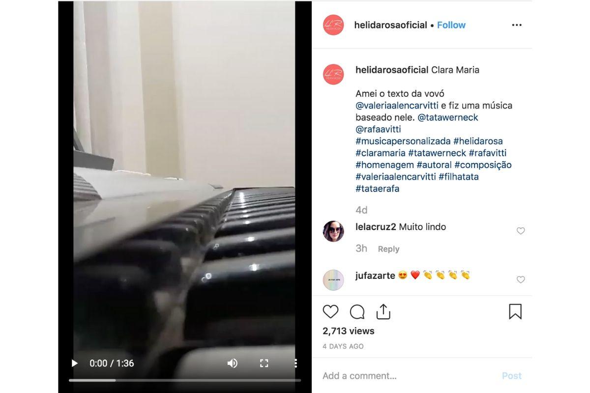 A composição foi publicada por um seguidora que montou um arranjo, dando o toque final para o texto de Valéria. “Clara Maria. Amei o texto da vovó @valeriaalencarvitti e fiz uma música baseado nele”, escreveu um legenda.