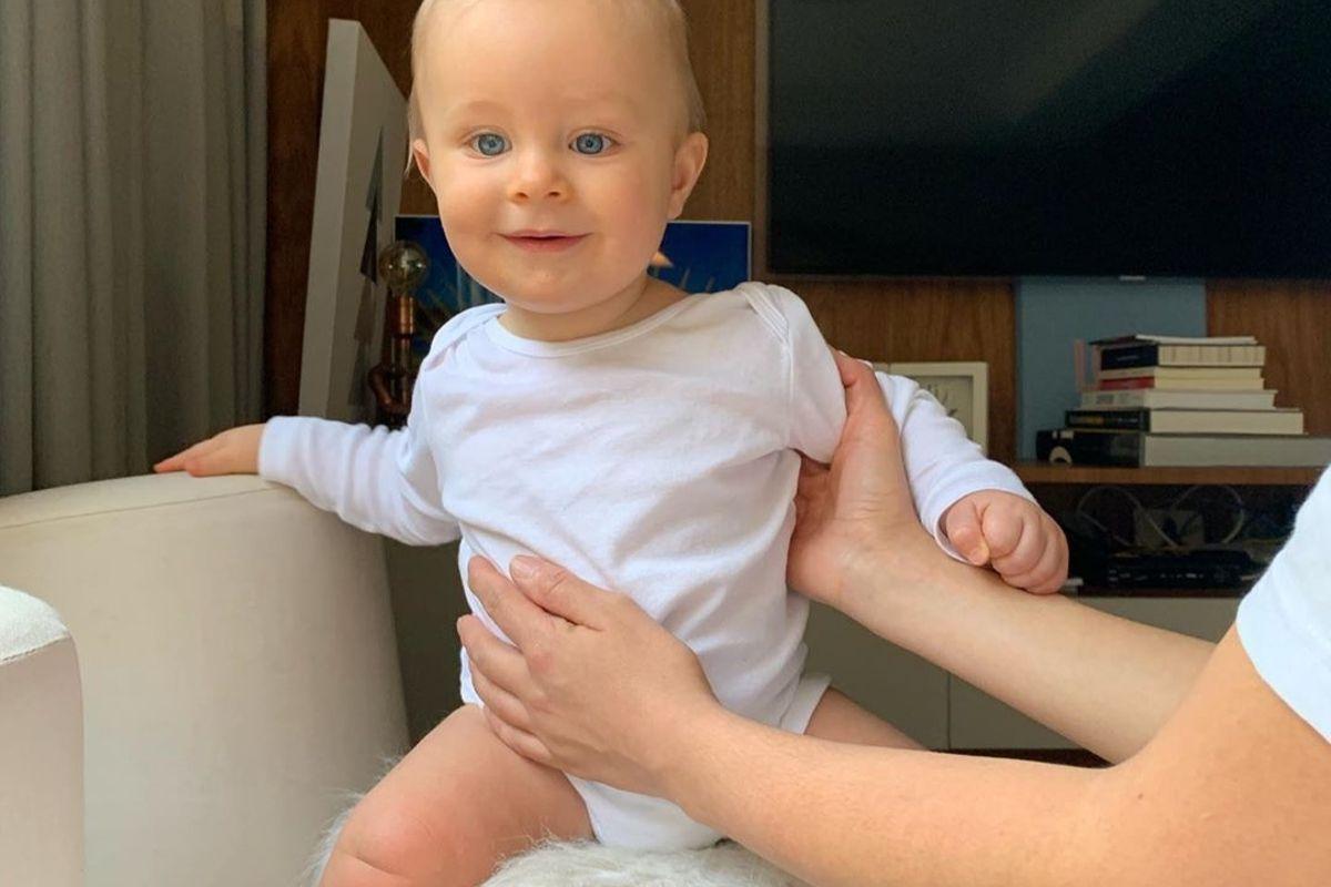 Shantal exibe os primeiros dentes do filho Pippo aos seis meses