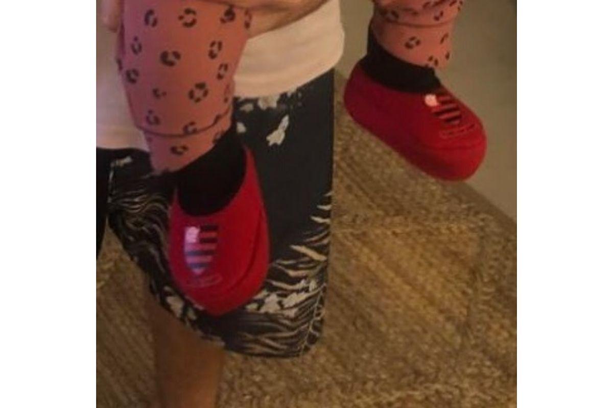 O calçado foi um presente do avô, e ela também destacou que a combinação de Rafa Vitti no look da menina não deu muito certo: “Minha deusa Clarex com seu sapatinho do Flamengo que vovô deu (tb deu camisa, toalha, óculos , colcha e um indireta de que seria de bom tom ser flamenguista). Usando uma calça que não combina mas que Rafa escolheu e não to jogando isso na cara dele publicamente pq jamais faria isso. Parabéns Flamengo! Mta emoção! Que momento histórico! Beijos em todos e parabéns ao técnico que além de ser maravilhoso é a cara do Bon Jovi”, brincou.
