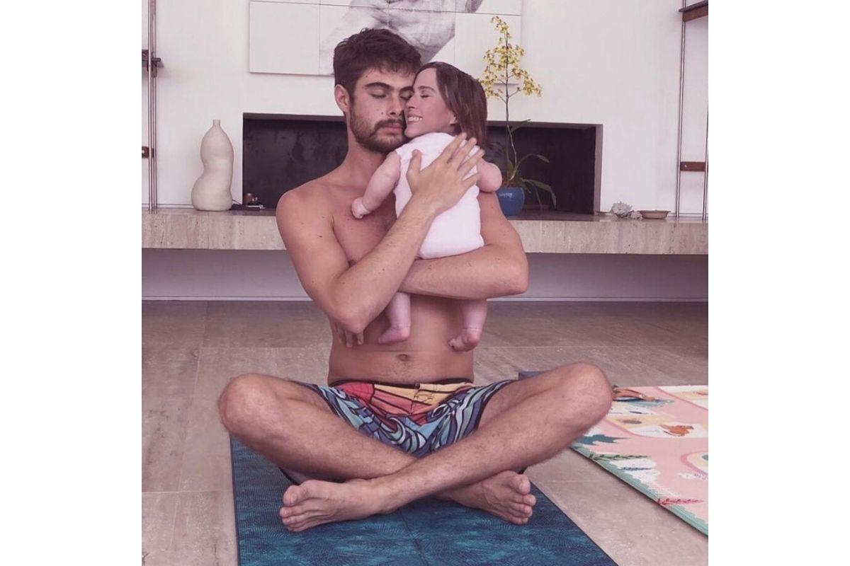 Na legenda, ela escreveu: “Ah obrigada gente 🙂 pelo carinho imenso com nossa família. Linda montagem. Fica boa em banheiro. Diversos cômodos legais”, disse sem perder o senso de humor. Na imagem original, Rafa Vitti estava com Clara Maria no colo e fazendo yoga, postada há exatamente um mês.