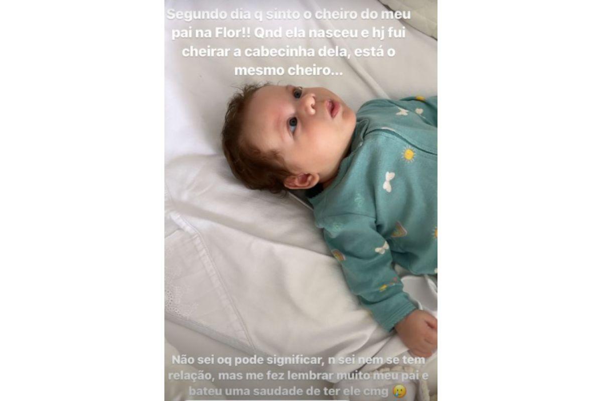 No Instagram, Virginia contou: “Segundo dia que sinto o cheiro do meu pai na Flor! Quando ela nasceu e hoje fui cheirar a cabecinha dela, está o mesmo cheiro… Não sei o que pode significar, não sei nem se tem relação, mas me fez lembrar muito meu pai e bateu uma saudade de ter ele comigo. “, escreveu ela.