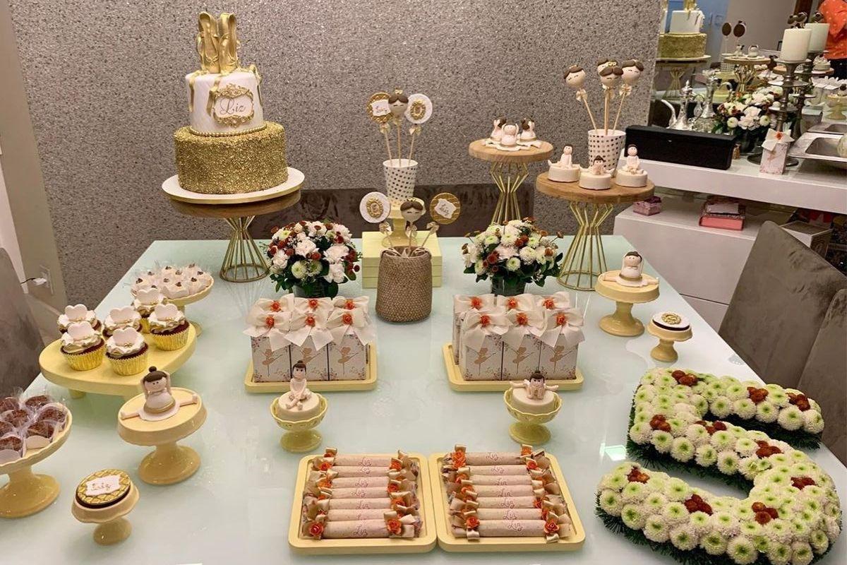 A bebê combinou os tons da roupa com o dourado do tema de bailarina. Ficou tudo muito lindo! “5º Mesversário da nossa pequena! Mais uma vez quero agradecer os meus parceiros que estão sempre com a gente em todos os meses“, escreveu em legenda.