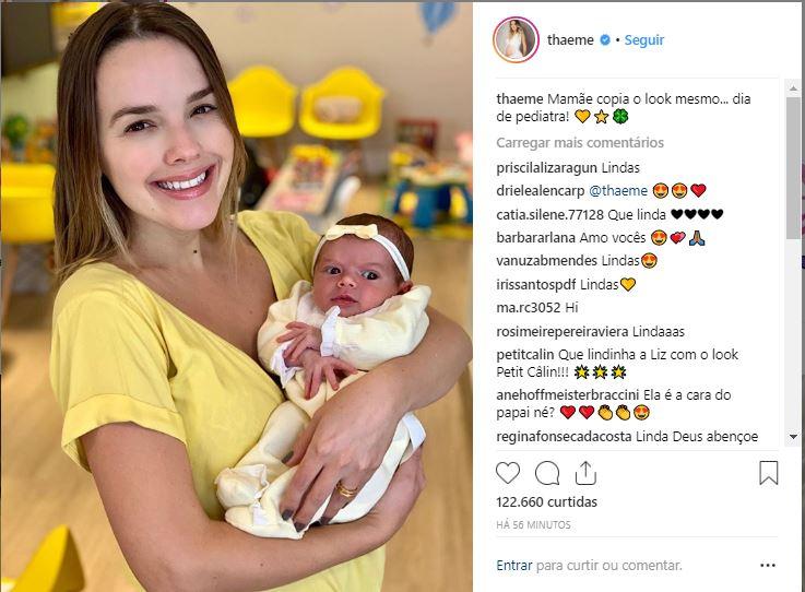 Os seguidores adoraram a combinação de mãe e filha e deixaram muitos comentários elogiando as duas. “Adorei o look, vocês estão lindas!”, disse uma fã. “A Liz está muito linda, uma princesa”, comentou outro seguidor. “Ela é a cara do pai, né? Linda!”, uma fã comparou.