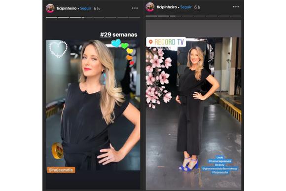Já nos stories, com um clima bem mais alegre e menos tenso, a apresentadora apareceu com um macacão preto. Ticiane comemorou: “29 semanas”. A apresentadora colocou vários gifs de emojis e letras coloridas.