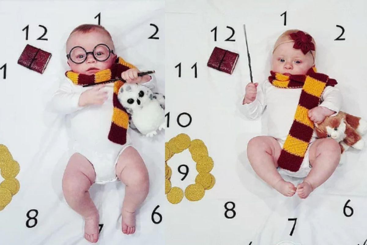 Para diferenciar o sexo dos bebês, os meninos foram fantasiados de Harry Potter e as meninas de Hermione. Fofo, né?