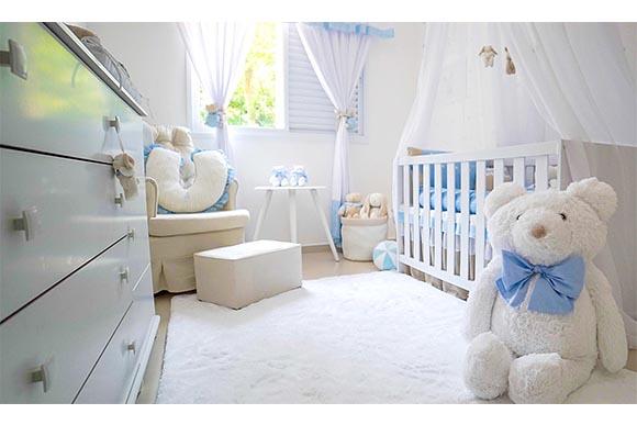 Para decorar o ambiente, os pais escolheram prendedores para as cortinas, urso de pelúcia gigante e bolas de pelúcia espalhadas no chão, deixando o quarto acolhedor e descontraído. Velloso e Christina também escolheram peças como quadrinhos decorativos, nichos em formato de casinha e os modernos cestos organizadores para deixar a vida da mãe mais fácil!