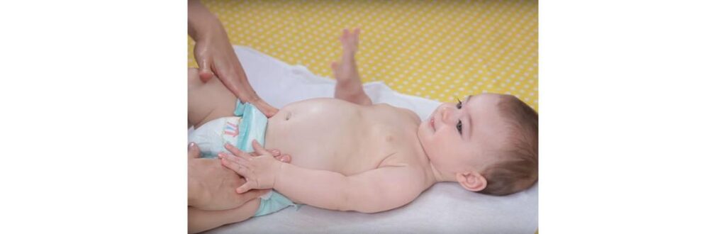 O primeiro passo é deixá-lo somente de fralda e garantir que ela esteja o mais folgada possível. Para a massagem, o ideal é usar óleo 100% vegetal, mas o produto não deve ir diretamente para a pele do bebê, esquente-o nas mãos para aquecê-lo.