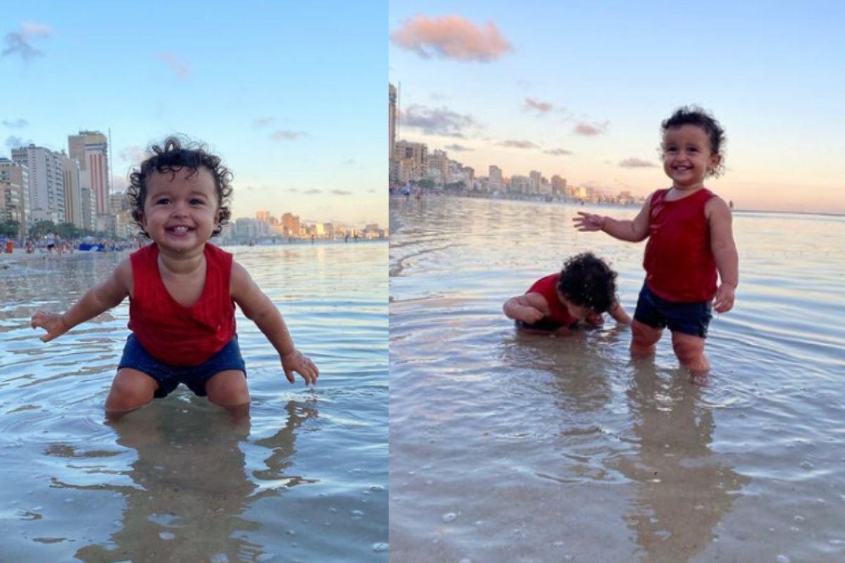 ”Quem tá curtindo um verão adoidado aí!?e tome -lhe parquinho de manhã e prainha no por do sol .. nem o carrossel tá aguentando de tanta fofura! E mainha fica como? Pira viola!”, escreveu a mãe na legenda da publicação no Instagram.