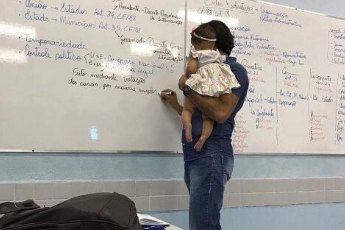 O professor que ministra aulas de direito constitucional, segurou Antonella, de 8 meses, para que Barbara Cavalcanti, de 19 anos, conseguisse estudar.