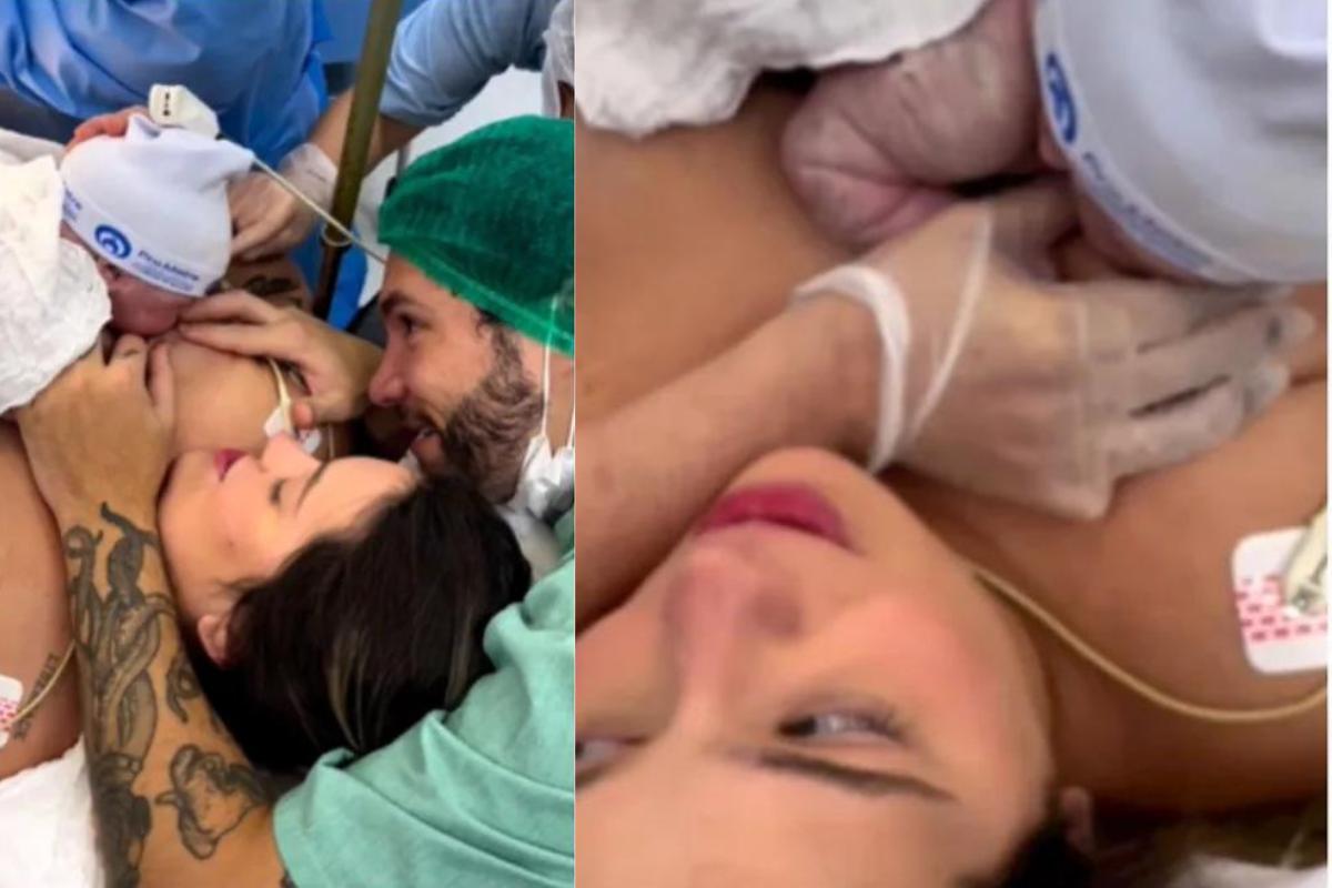 No vídeo, postado em seu Instagram, Viih aparece ainda deitada na sala de cirurgia da maternidade, com Eli ao seu lado, enquanto Lua tenta pegar o peito. “Jamais esquecerei o seu primeiro tetê logo que nasceu”, escreveu ela na publicação.