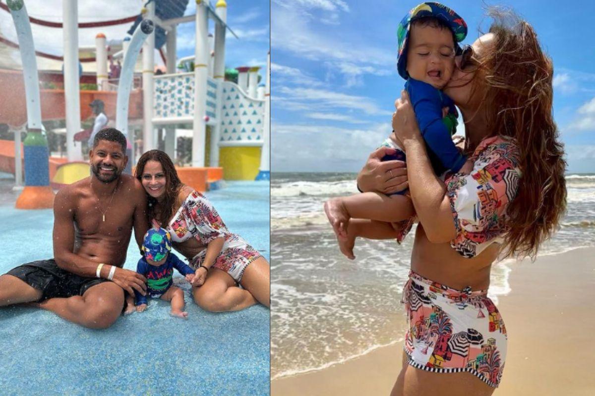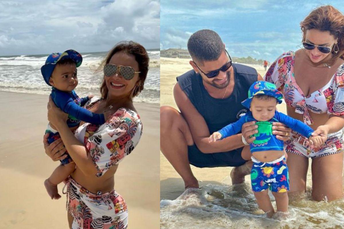 Essa foi a primeira vez que ela levou o filho para a praia e aproveitou a oportunidade para fazer vários registros do momento especial. Nas imagens ela mostrou a reação do filho ao entrar no mar e brincar na areia com os pais. ‘’Dias de muito amor e diversão por aqui!’’, escreveu a mãe na legenda da publicação no Instagram.