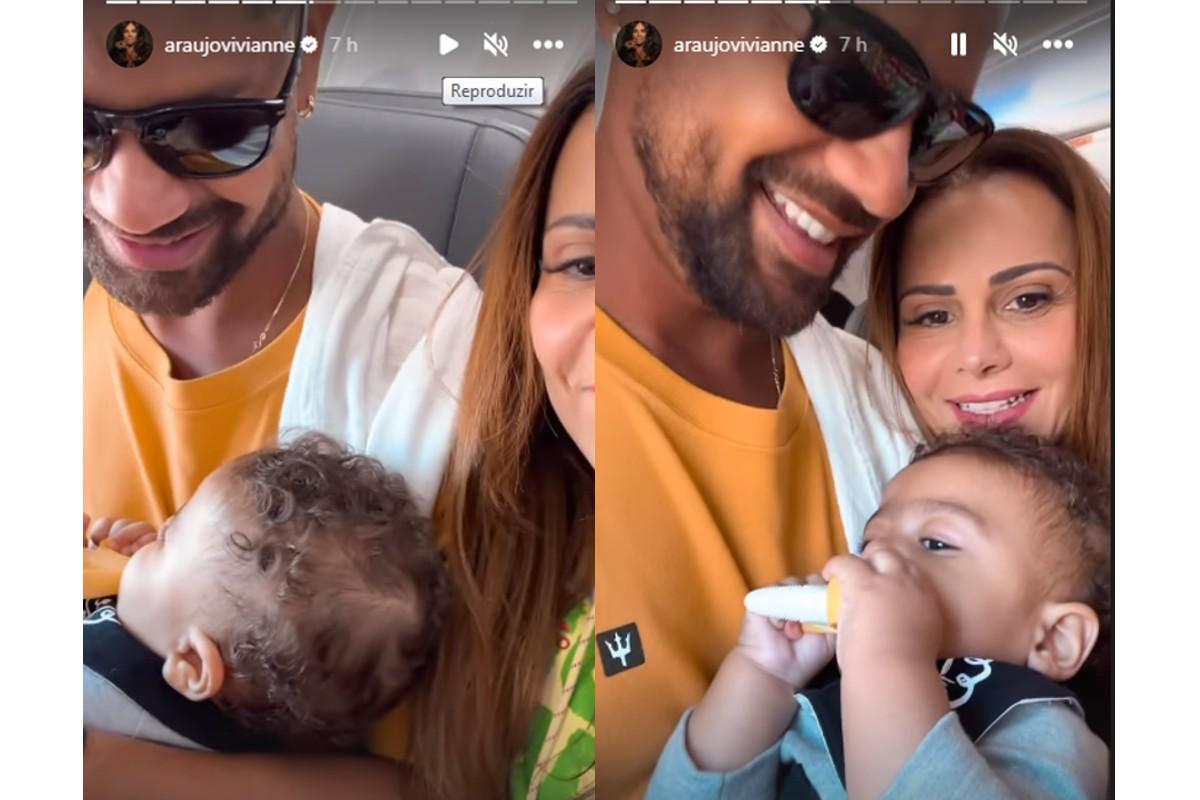A atriz Viviane Araújo compartilhou na quinta-feira, 13 de abril, a primeira viagem do filho Joaquim, de 7 meses, fruto de seu relacionamento com Guilherme Militão. Os pais fizeram uma série de vídeos com a reação do bebê a sua primeira experiência em um avião.