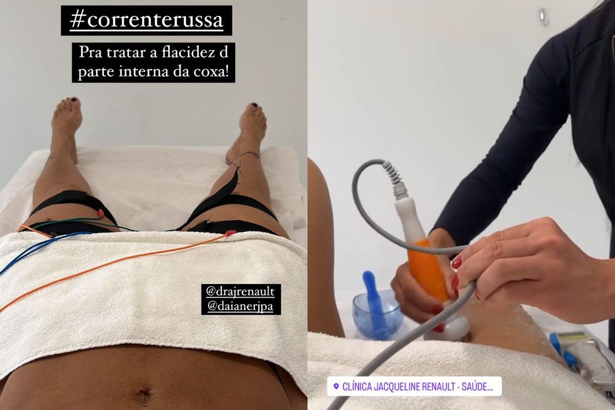 Para deixar os músculos mais firmes, ela adicionou na legenda de sua publicação na sessão de stories da plataforma Instagram: “#correnterussa”, revelou o aparelho que é utilizado em sua pele para ficar com as curvas mais marcadas. “Pra tratar a flacidez da parte interna da coxa”, explicou o motivo de estar fazendo o tratamento.