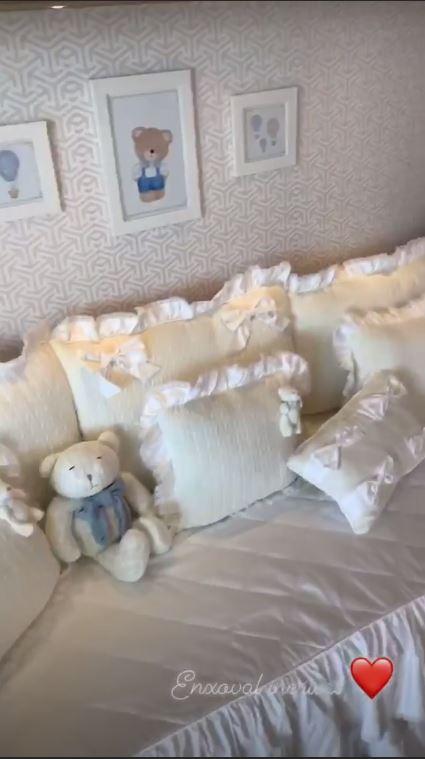 Além de mostrar a decoração pelos stories, a assessoria do cantor divulgou algumas fotos do quarto de Dom. “É muito legal compartilhar essa parte da nossa casa com vocês. Estamos muito felizes com o quarto do Dom. Ficou lindo”, o cantor contou.