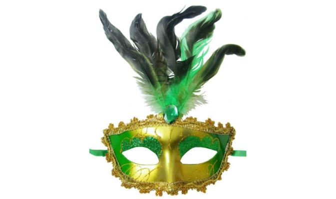 Mascara pena verde e dourada artesanal – Grupo Agata para Elo7 – 18,99 reais (Foto: Divulgação