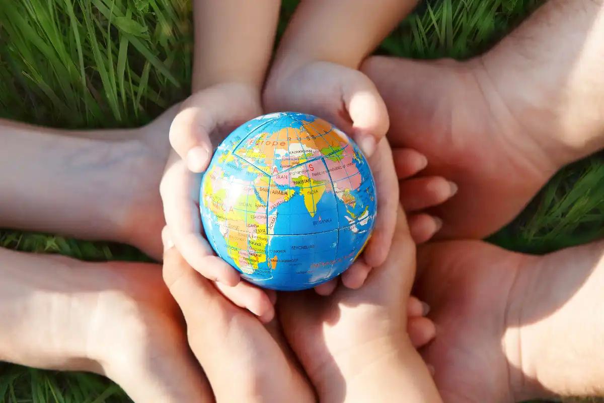 mãos segurando o planeta Terra