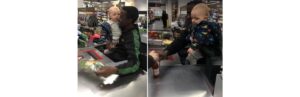 Exemplo: funcionário de supermercado ajuda mãe durante as compras