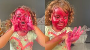 Menina de 3 anos suja rosto inteiro de batom e demora mais de 10 horas para tirar