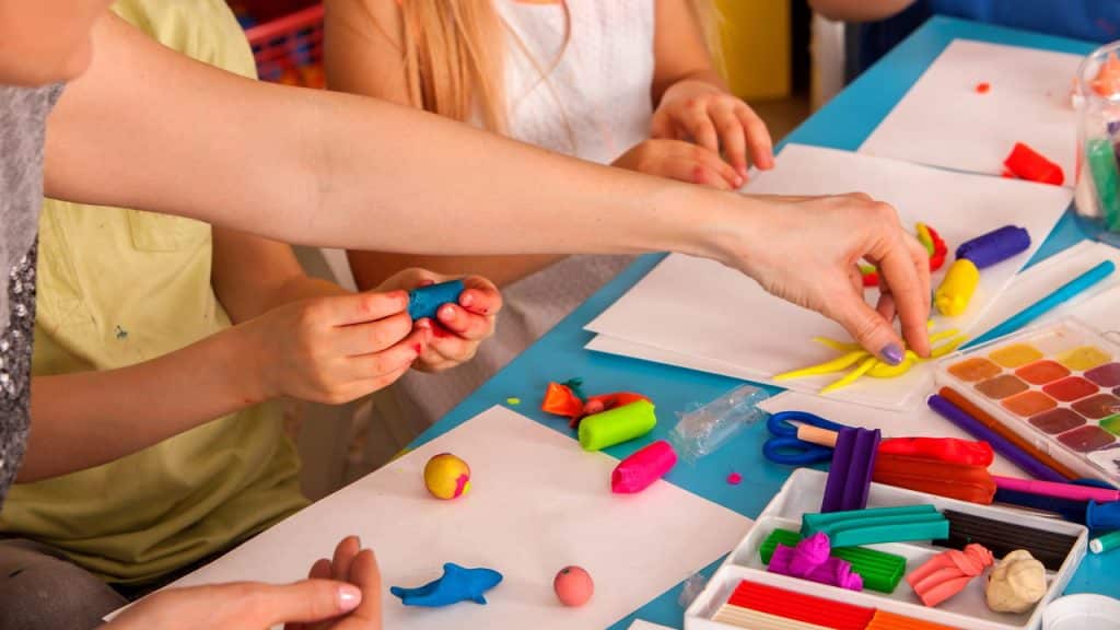 Ofereça massinhas coloridas para criar formas e personagens. Esta brincadeira é ótima para exercitar a criatividade e a coordenação motora fina das crianças.
