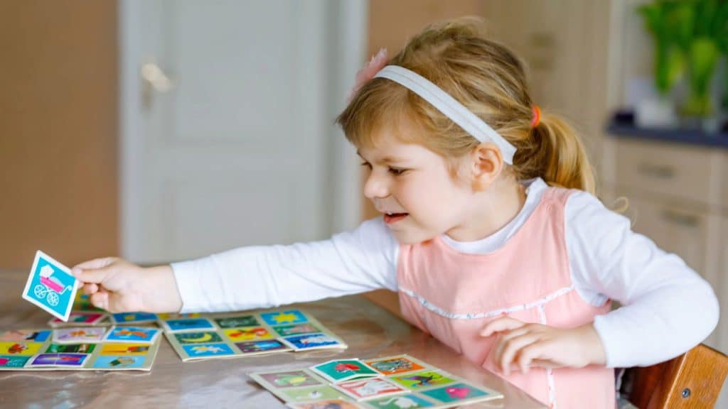 criança brincando com jogo da memória / Créditos: depositphotos.com / romrodinka