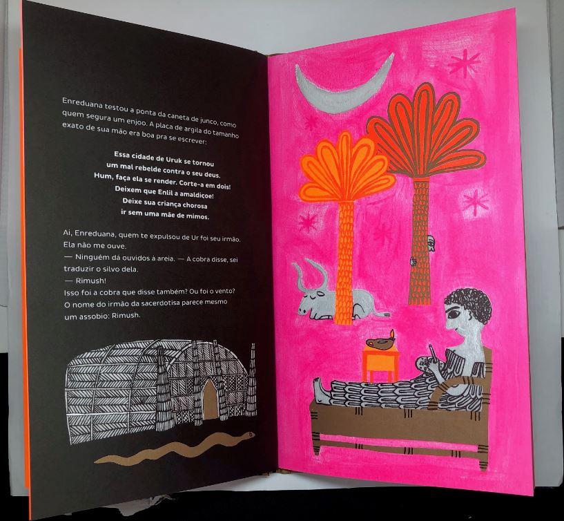 Baseado em uma personagem real, a filha do rei Sargão, da Mesopotâmia, conta a história da primeira mulher do mundo a ser considerada escritora e filósofa. O resultado? Um livro com cores do deserto e da argila, o rosa representa Inana, a deusa da fertilidade.