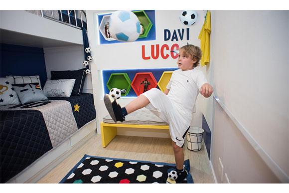 O garoto de 7 anos filho do craque Neymar ganhou há poucos dias um quarto com um tema super especial e encheu seus olhos. O cômodo foi decorado totalmente com colchas, brinquedos e móveis que remetam ao futebol.
