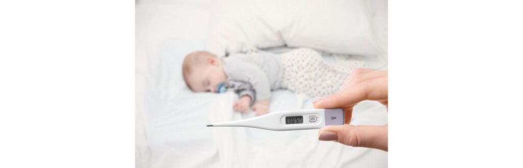 Uma febre de 38°C ou mais em um bebê menor de três meses; 38,3°C em bebês de 3 a 6 meses; ou maior de 39°C em bebês de 6 meses a 2 anos.