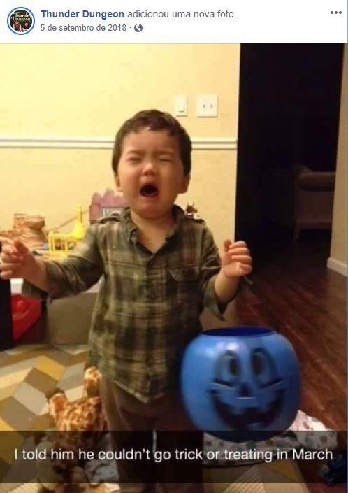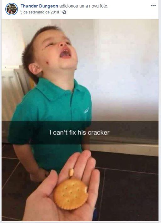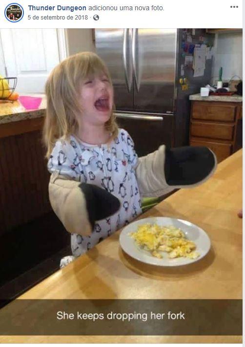 A página do Facebook Thunder Dungeon criou uma série chamada “Reasons why my tiny human is crying” (Razões do meu filho estar chorando, em português), onde mostra várias fotos de crianças chorando pelos motivos mais… Peculiares.