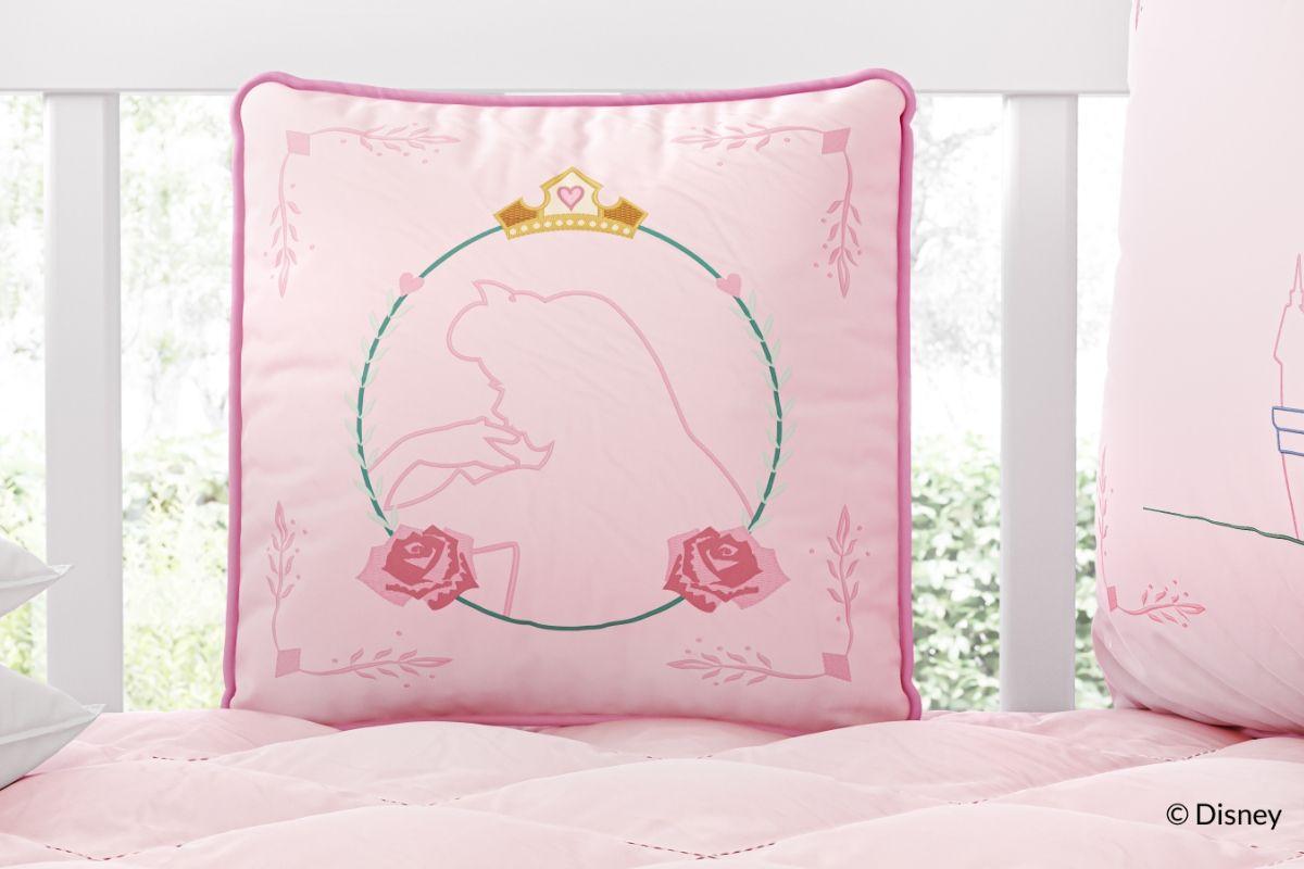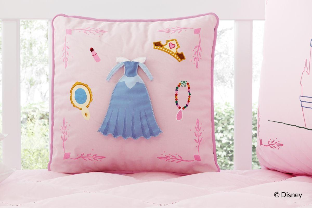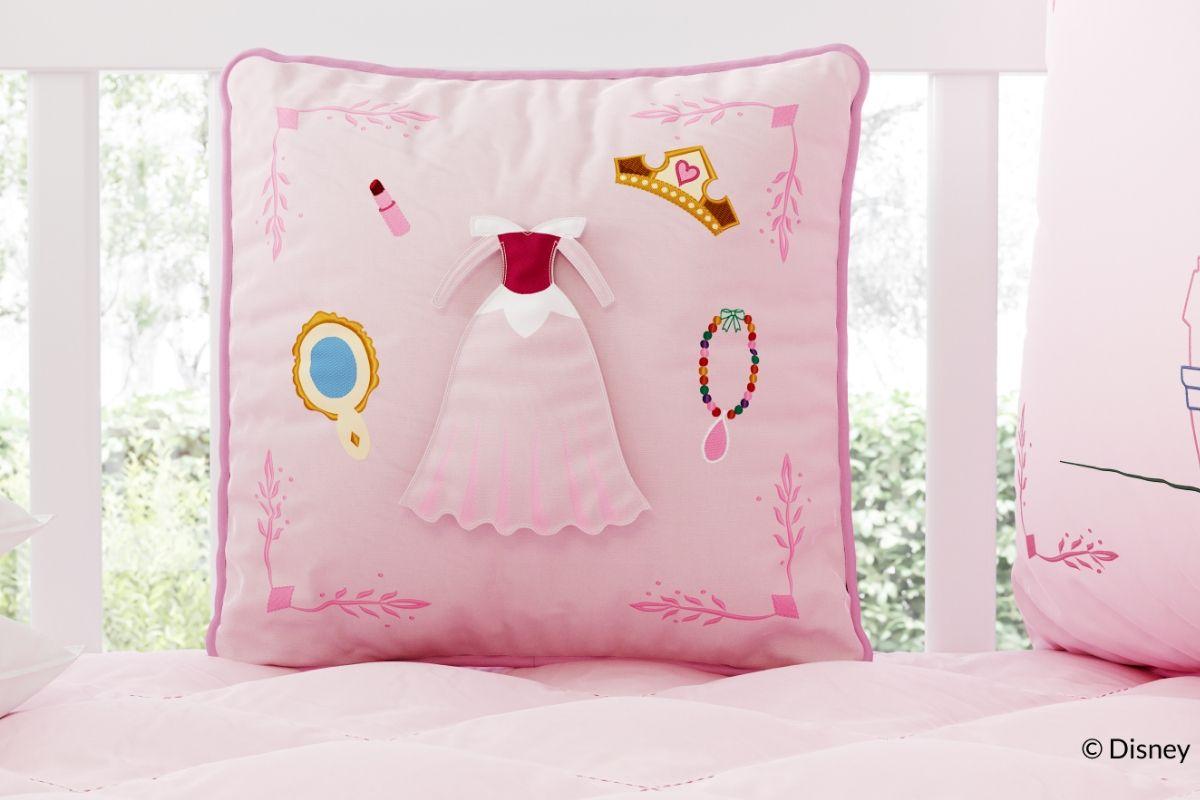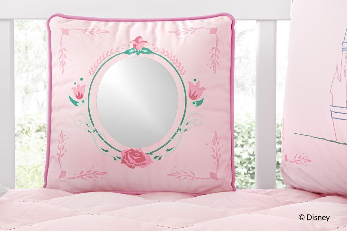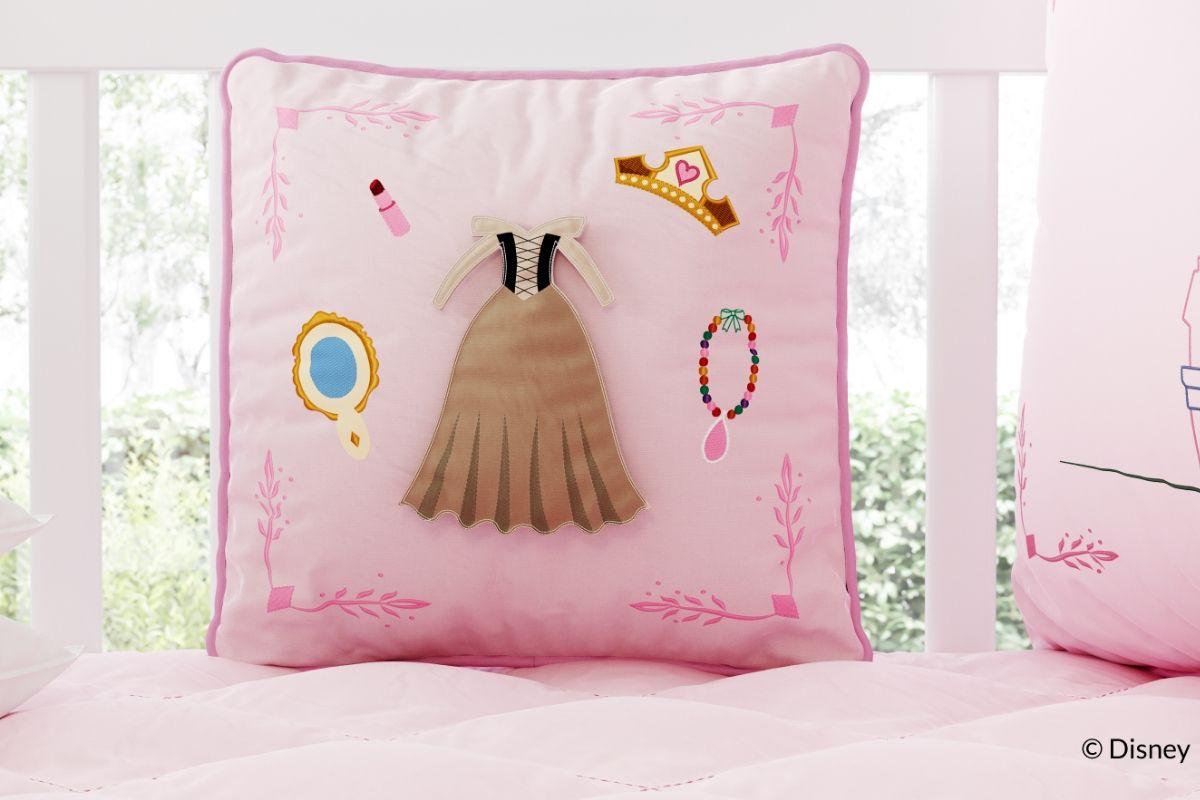 O Quarto de Bebê Princesa Aurora traz duas novidades que a gente amou: todos os produtos do enxoval são bordados e com detalhes supercriativos como, por exemplo, as almofadas com espelho acrílico e vestidos com velcro para trocar de acordo com a sua preferência. A segunda inovação vem de uma inspiração clássica: as almofadas inspiradas em bonecas de papel, um tipo de brinquedo muito famoso nas décadas de 30 a 50, em que as meninas podiam trocar as roupas e os acessórios das bonecas. Através das almofadas que “trocam de roupa”, sua filha poderá estimular a criatividade e a imaginação.