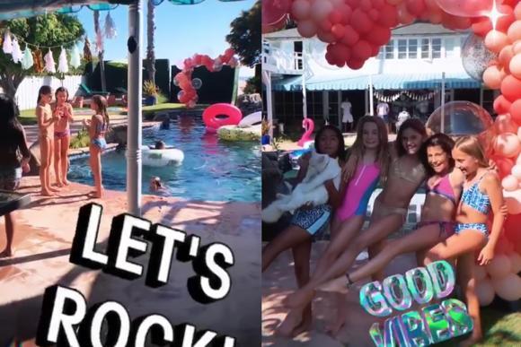 Com o por do sol no fundo, já era difícil não ser lindo, mas a decoração também ajudou a deixar o momento mais completo. A festa na piscina teve direito a balões rosa, bóias divertidas para ajudar na decoração e até um mergulho no mar! Anja convidou algumas amigas para fazer parte da festa e deixou tudo mais divertido!