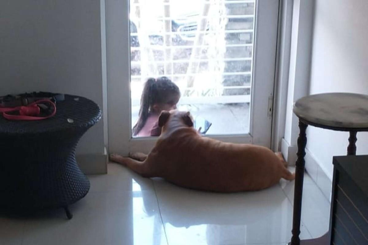 Uma menina e uma cadela, apesar das “barreiras” físicas, criaram um laço no período de pandemia. Através de uma porta, a criança e Sheitan, uma boxer de 12 anos, passaram um tempo juntas conversando.
