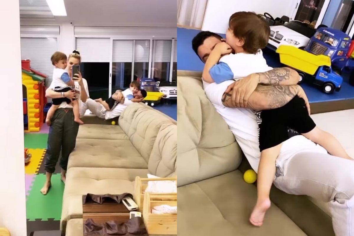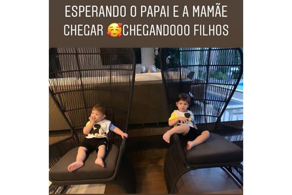 “Nossos grudinhos!”, disse Andressa nos vídeos enquanto Samuel e Gabriel abraçavam os pais. “Esperando mamãe e papai chegar”, ela escreveu na legenda de outra foto. “Você cuidou direitinho do Samuel pra mamãe?”, perguntou a modelo para o filho mais velho Gabriel. “Sim, cuidei do Samuel”, respondeu o menino, arrancando risos da mãe.