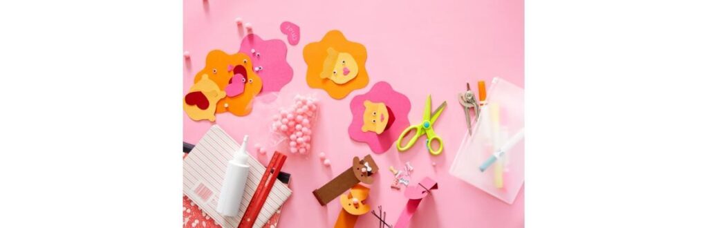Para fazer o rei da selva, desenhe o rosto em uma cartolina amarela e a juba em cartolinas cor-de-rosa e laranja; corte tudo. Dobre a cabeça para que a boca possa se abrir e cole a parte de cima do vinco na juba. Recorte focinhos e línguas em formato de coração e adicione os olhos de plástico. Baixe o molde do leão clicando aqui.