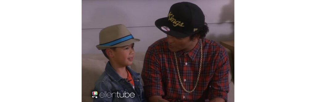 A música do dia é Uptown Funk, de Mark Ronson e Bruno Mars. Kai desde os quatro anos é fã de Bruno Mars e faz sucesso no youtube cantando as suas músicas. Em 2015 a Ellen Degeneres promoveu um encontro entre eles. Os dois cantaram Uptown Funk juntos, dá uma olhada: