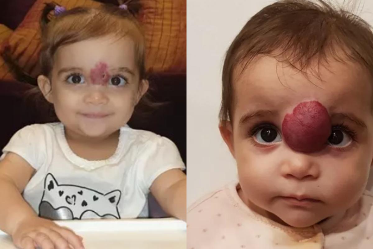 Noor, de 1 ano, nasceu com um hemangioma, um tumor benigno com vários vasos sanguíneos juntos. Isso é uma anomalia vascular comum, porém o tamanho era extremo e, em menos de um ano, ele já estava cobrindo a parte superior do nariz e diminuindo a capacidade de visão da menina. Caso não fosse retirado, ele provavelmente continuaria crescendo e causaria problemas respiratórios, visão e psicológicos.