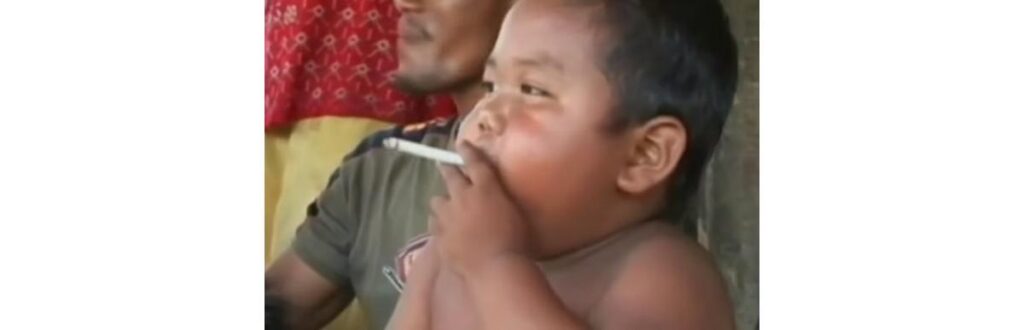 Seu primeiro cigarro foi oferecido a ele pelo pai, quando tinha apenas 1 ano e meio de vida. Desde então, o menino desenvolveu uma dependência à nicotina e piorou gradualmente até atingir a quantia de 40 cigarros diários.
